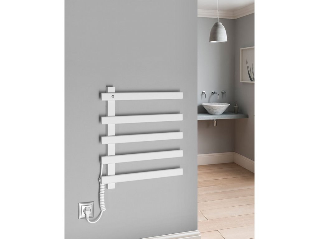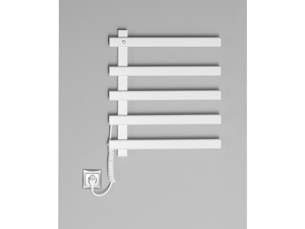 Elektrická otopná tělesa z lakované nerez oceli ELCOR jsou určena k nahřívání a sušení ručníků, což oceníte zejména v zimním období. Vnitřek otopného tělesa je vyroben z uhlíkového vlákna (bez použití kapalné plnící směsi), což zajišťuje skvělou tepelnou vodivost. Podsvětlený vypínač je integrován v horní levé části. Těleso lze zapojit přímo do elektrické zásuvky díky kroucenému kabelu o délce 80 cm, který je umístěn vlevo dole a nelze ho pozičně měnit.