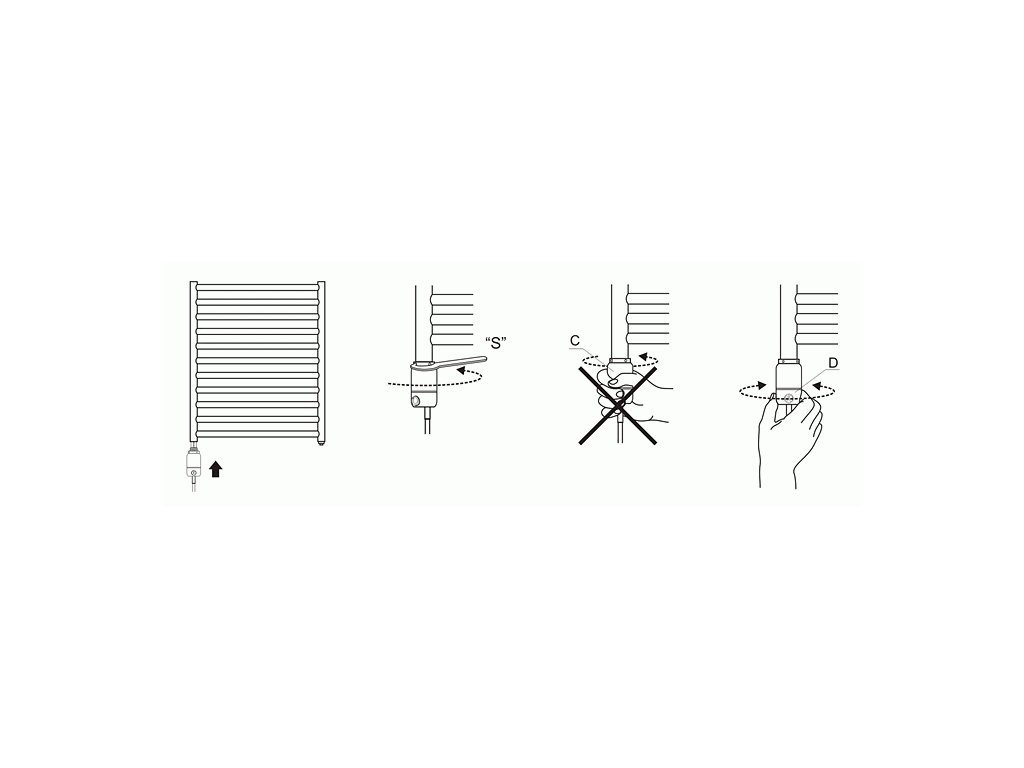 Elektrické topné tyče jsou vhodné pro koupelnové žebříky, které mají v popisku uvedeno, že jsou vhodné také pro vytápění elektrickou topnou tyčí. Velmi jednoduchá instalace, tyč se pouze zasune do radiátoru a zapojí do zásuvky.