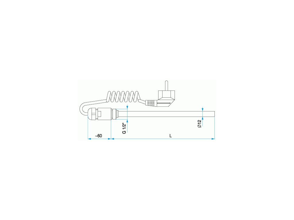 Topné těleso je vyrobeno z ochranné trubky z kvalitní nerezové oceli, příruby se závitem G " a těsnícím O kroužkem a přívodní šňůry s vidlicí nebo s prostorovým termostatem. Topné těleso má síťový přívod typu „Y“, takže v případě poškození přívodní šňůry ji lze vyměnit za novou.