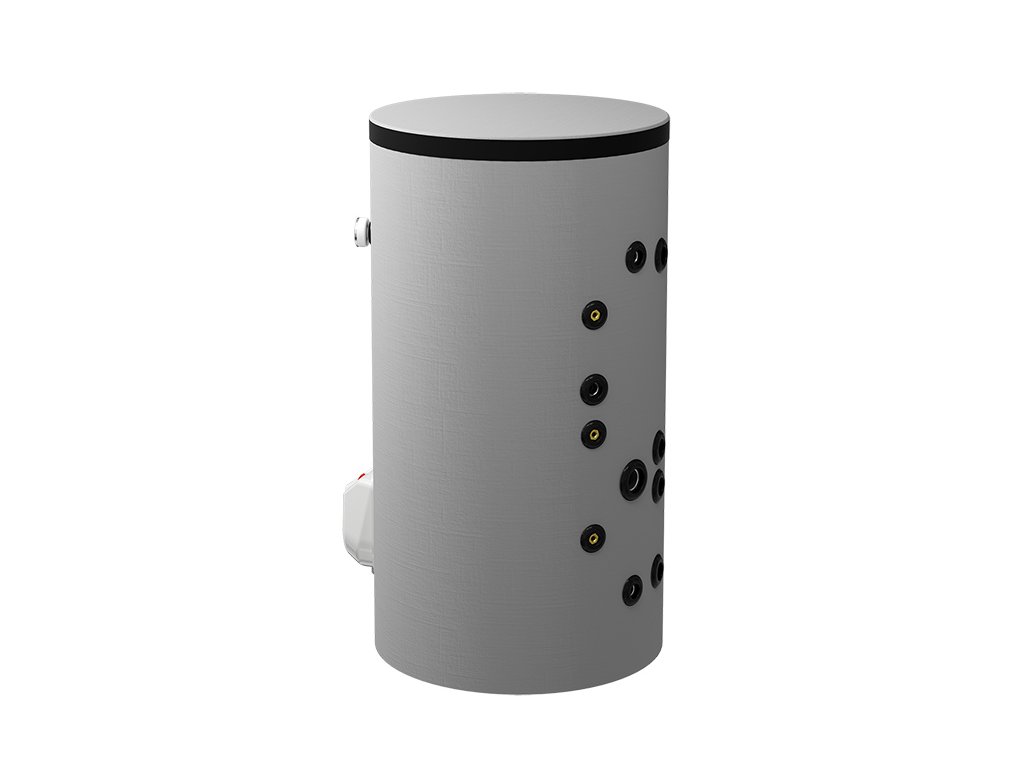 Stacionární ohřívač vody pro tepelná čerpadla, objem 200 l, 2 výměníky, el. topné těleso 3 kW, cirkulace, energetická třída B.
