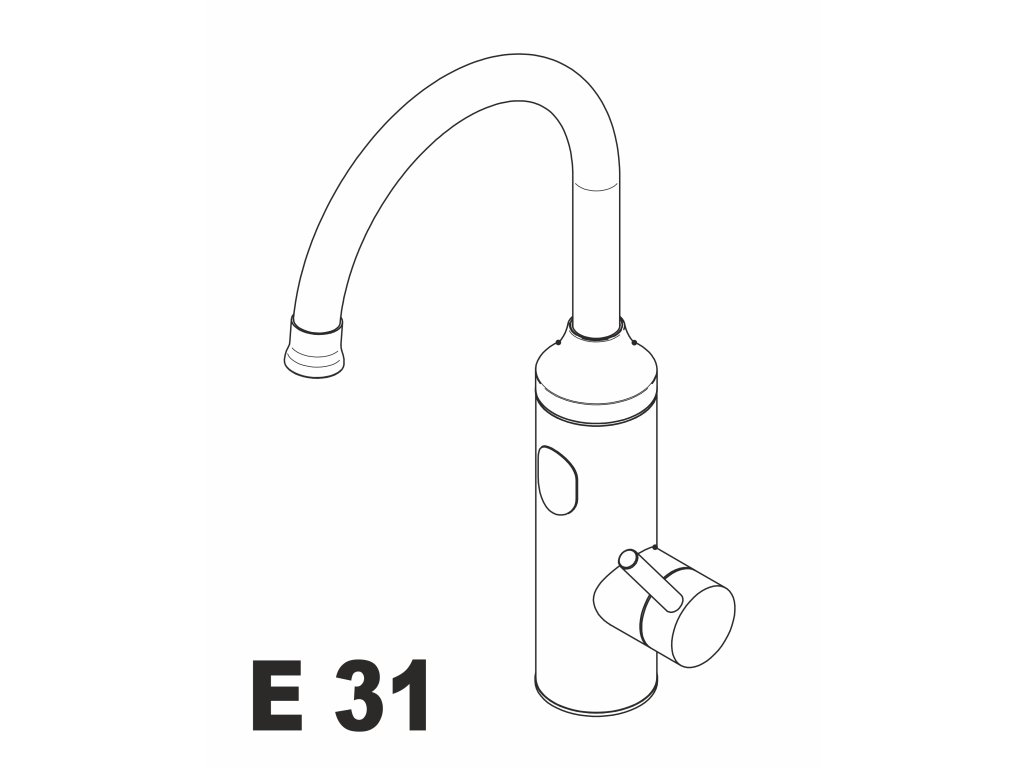 Stojánková vodovodní baterie E 31 s elektrickým ohřevem 3,3 kW je vhodná pro instalaci na umyvadlo nebo dřez v domácnosti, kanceláří, chatě, garáži a podobně.