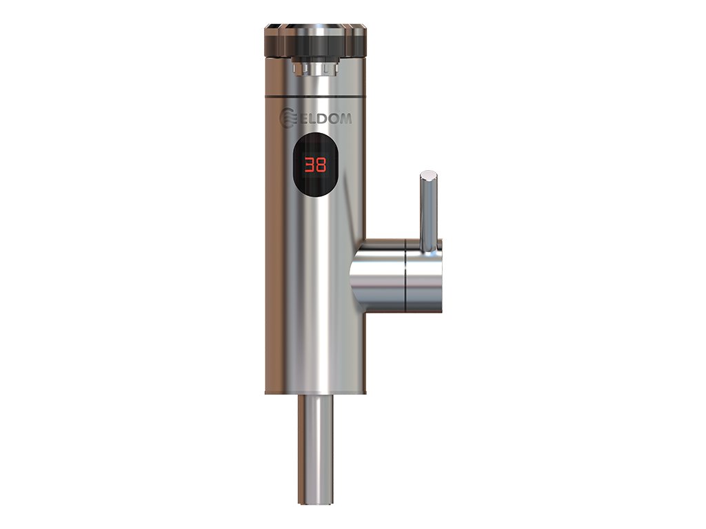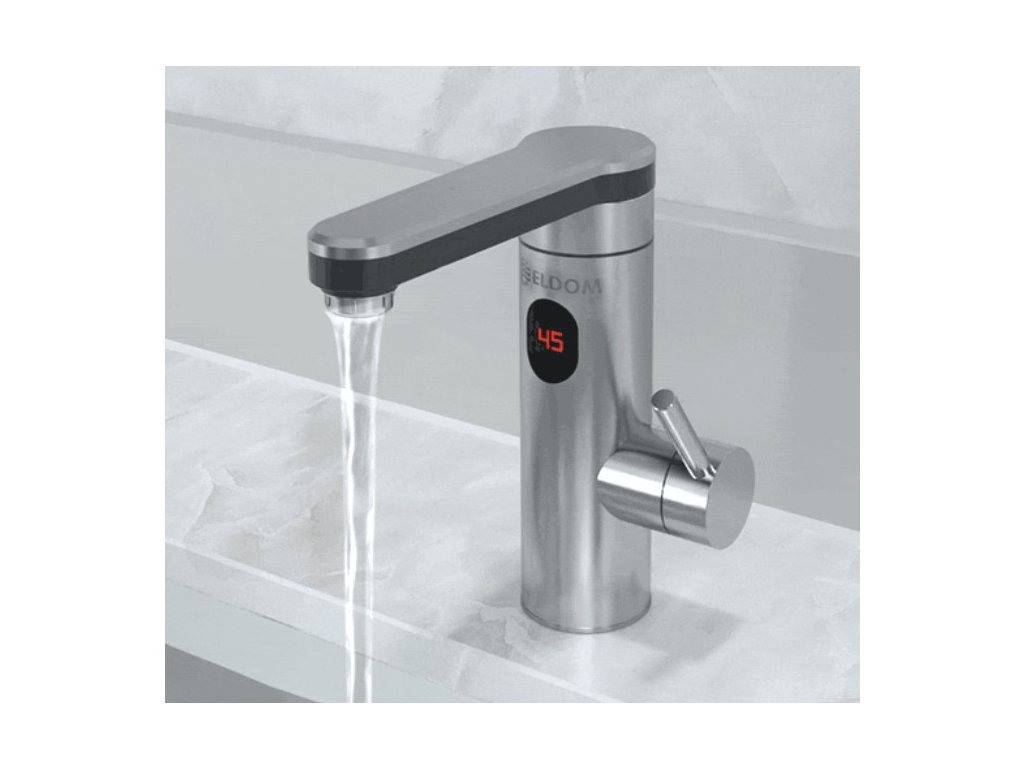 ELIZ E32 vodovodní baterie s integrovaným ohřevem vody 3,3kW a plochým otočným plastovým ramenem , povrch broušená nerez (Průtokový ohřívač Elíz E 32)