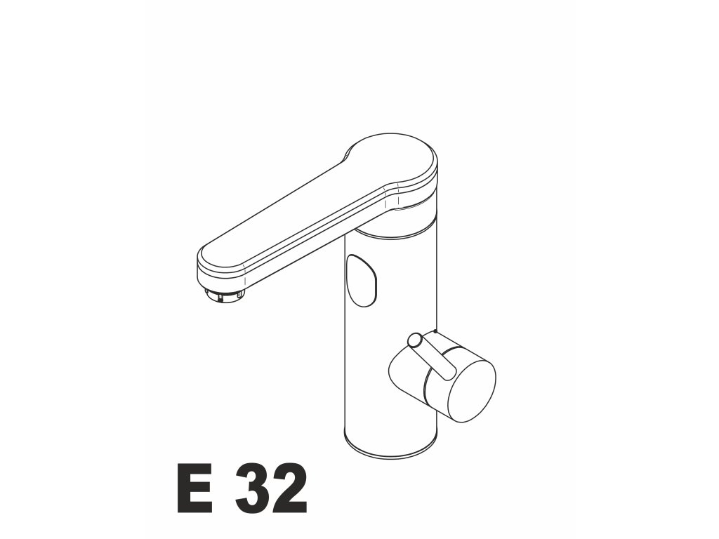 Stojánková vodovodní baterie E 32 s elektrickým ohřevem 3,3 kW je vhodná pro instalaci na umyvadlo nebo dřez v domácnosti, kanceláří, chatě, garáži a podobně.