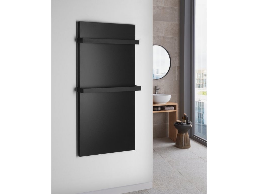 ENIS koupelnový sálavý topný panel 600W, 590x1200 mm, držáky ručníků, IP44, černá mat