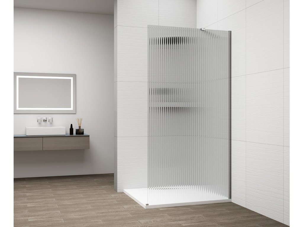 Prémiové dekorativní sklo, které prosvětlí koupelnu podobně jako čiré sklo, ale díky vlnitému reliéfu zároveň poskytne dostatek soukromí pro dokonalý požitek ze sprchování.