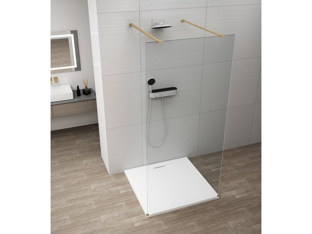 ESCA GOLD MATT jednodílná sprchová zástěna do prostoru; čiré sklo; 1100 mm