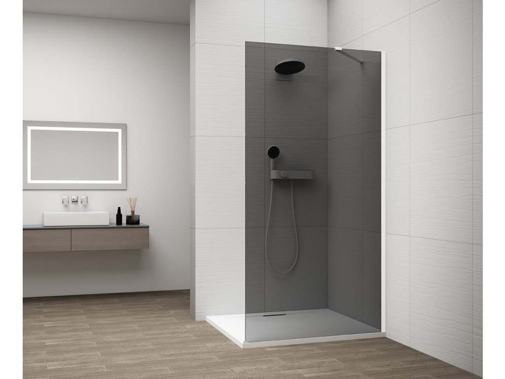 ESCA WHITE MATT jednodílná sprchová zástěna k instalaci ke stěně; kouřové sklo; 1100 mm