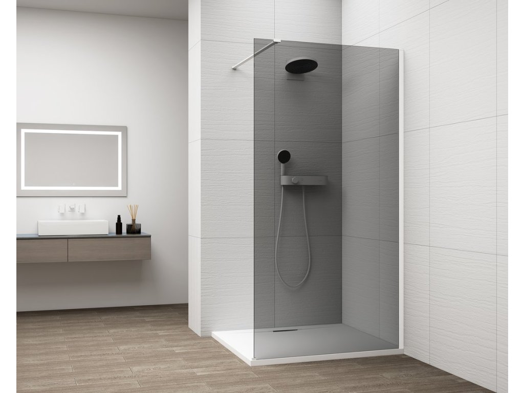 ESCA WHITE MATT jednodílná sprchová zástěna k instalaci ke stěně; kouřové sklo; 800 mm