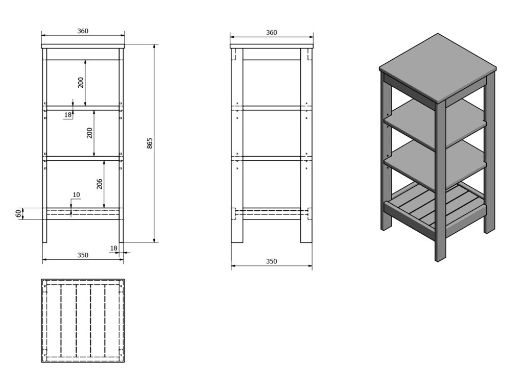 Umyvadlové skříňky doplňují koupelnové regály ve třech velikostech. Vysoký a nízký se čtvercovou základnou a nízký s obdélníkovou základnou. Regály lze postavit nejen v koupelně, ale i v jiných místnostech.