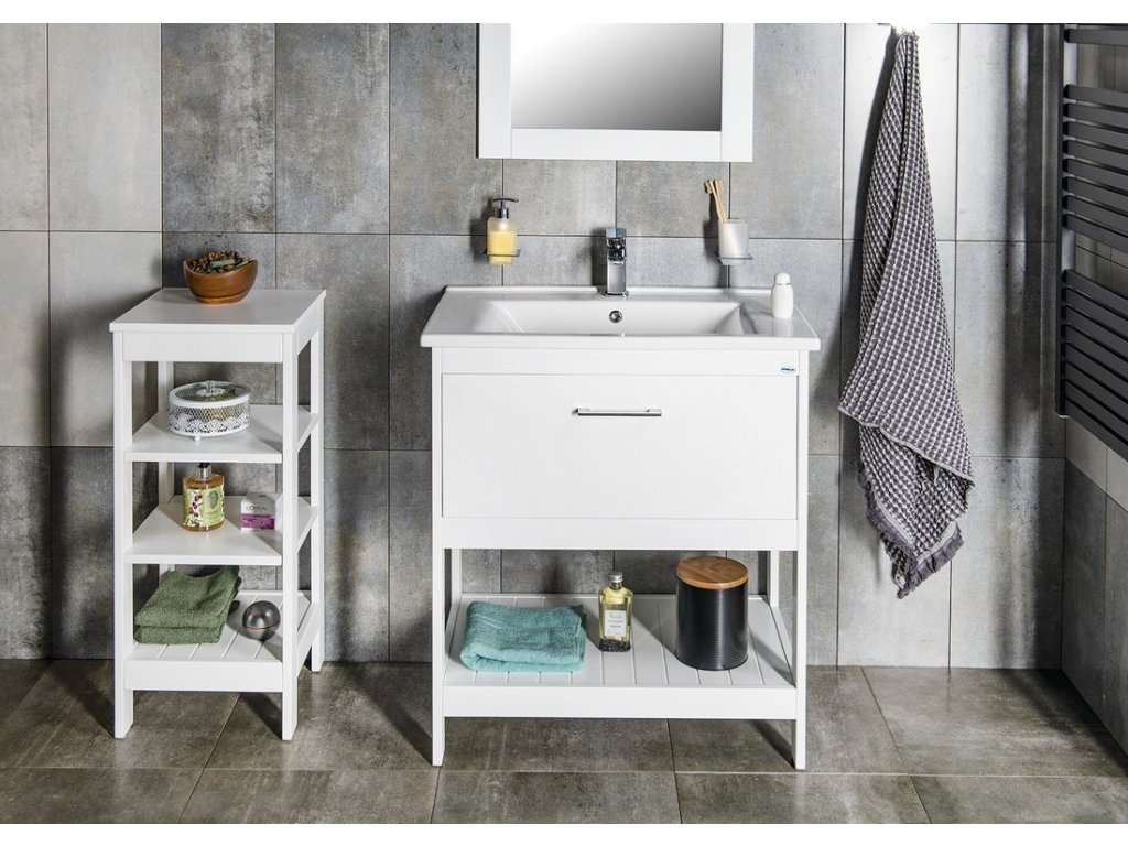 Série praktického policového nábytku ETIDE nabízí vzdušné a jednoduché řešení úložného prostoru pod oblíbenými umyvadly ZUNO a SAVA. Nábytek je vyroben z kvalitní MDF nalakované v moderním matně bílém odstínu. Působí odlehčeně a užitek i krásu přinese do koupelen různých stylů.