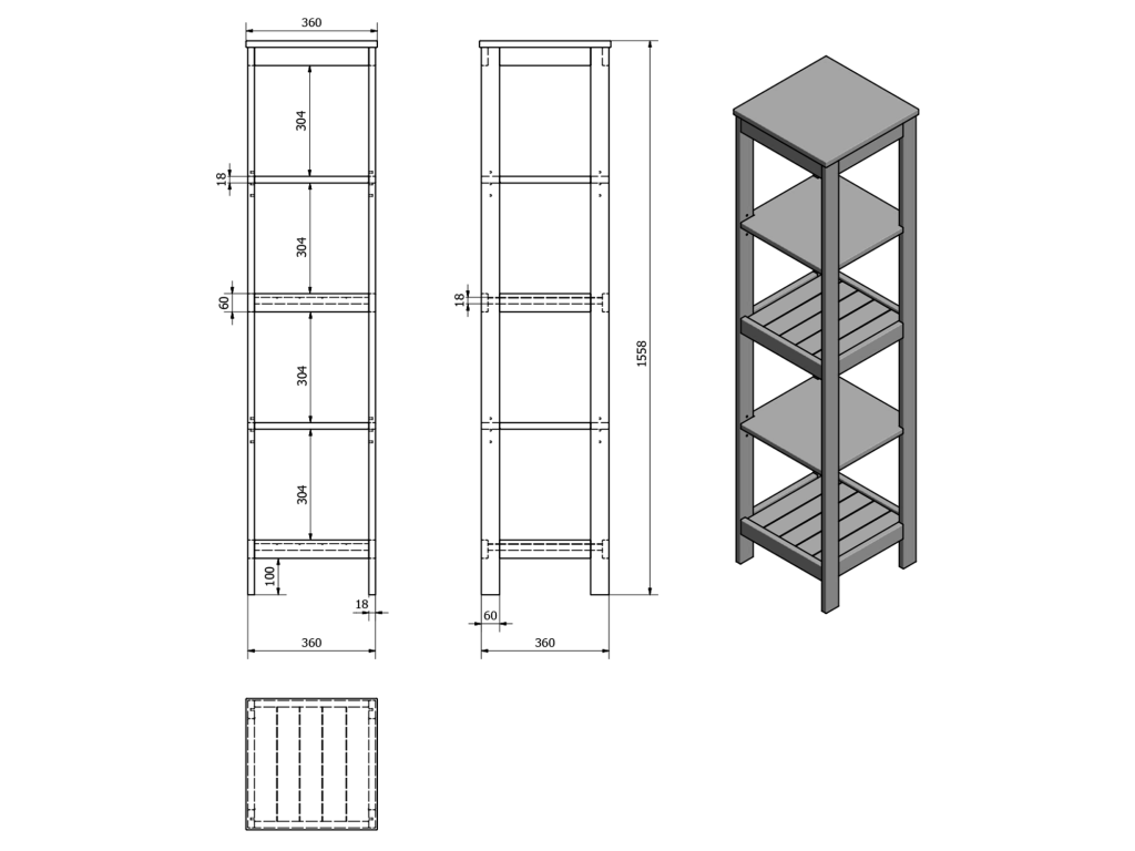Umyvadlové skříňky doplňují koupelnové regály ve třech velikostech. Vysoký a nízký se čtvercovou základnou a nízký s obdélníkovou základnou. Regály lze postavit nejen v koupelně, ale i v jiných místnostech.
