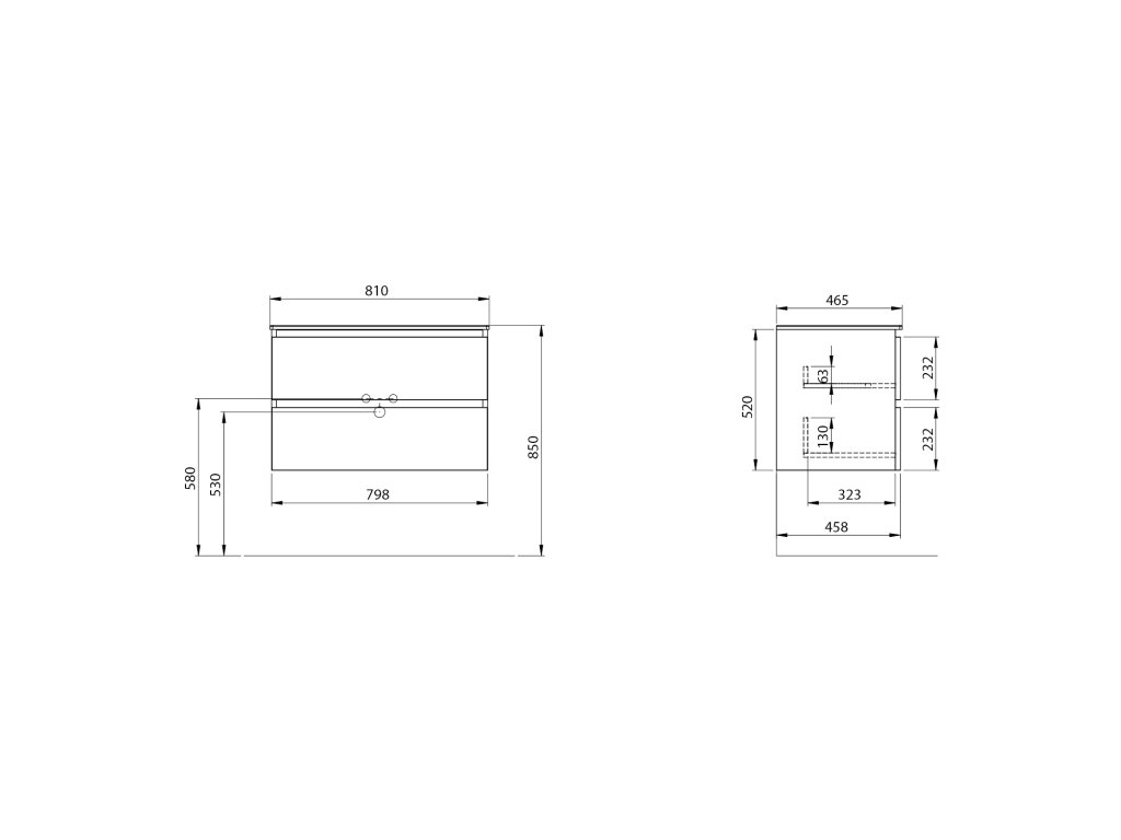 Zásuvky jsou vybaveny výsuvy s pomalým dojezdem a automatickým dovřením. Úložný prostor lze rozšířit přidáním doplňkových skříněk ESPACE. Nábytek je dodáván ve smontovaném stavu, připravený k okamžité instalaci.