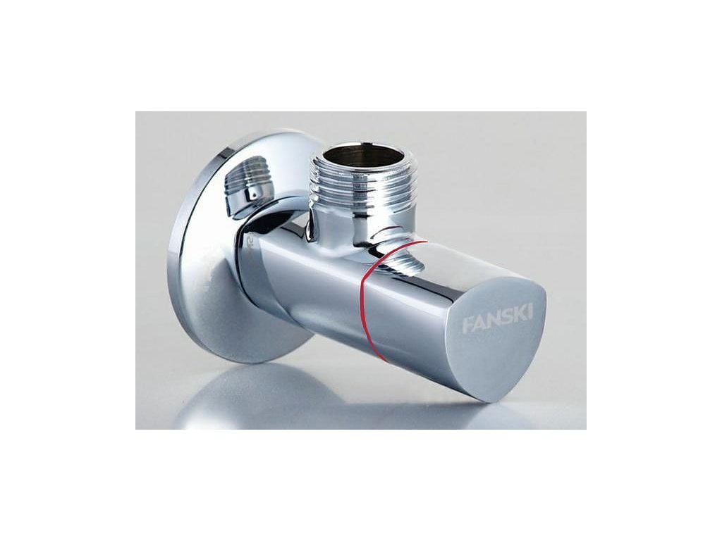 Fanski rohový ventil s keramickou kartuší M1/2 x M3/8 + sítko, chrom/červený- rohový ventil Fanski AP008 je celokovový, masívní těleso ventilu je mosazné, krycí růžice ocelová