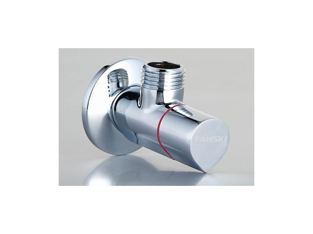 Fanski rohový ventil s keramickou kartuší M1/2 x M3/8 + sítko, chrom/červený- rohový ventil Fanski AP009 je celokovový, masívní těleso ventilu je mosazné, krycí růžice ocelová
