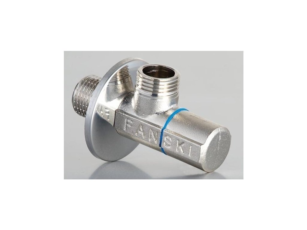 Fanski průmyslový rohový ventil s keramickou kartuší M1/2 x M3/8 /modrý- rohový ventil Fanski AP011 je celokovový, masívní neleštěné těleso ventilu je mosazné, krycí růžice ocelová