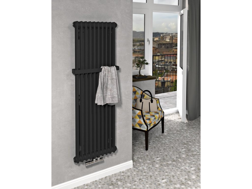 Trubkový radiátor FEDE ve dvou velikostech o šesti anebo deseti segmentech a barevných variantách bílá mat a černá mat lze doplnit o praktické madlo.