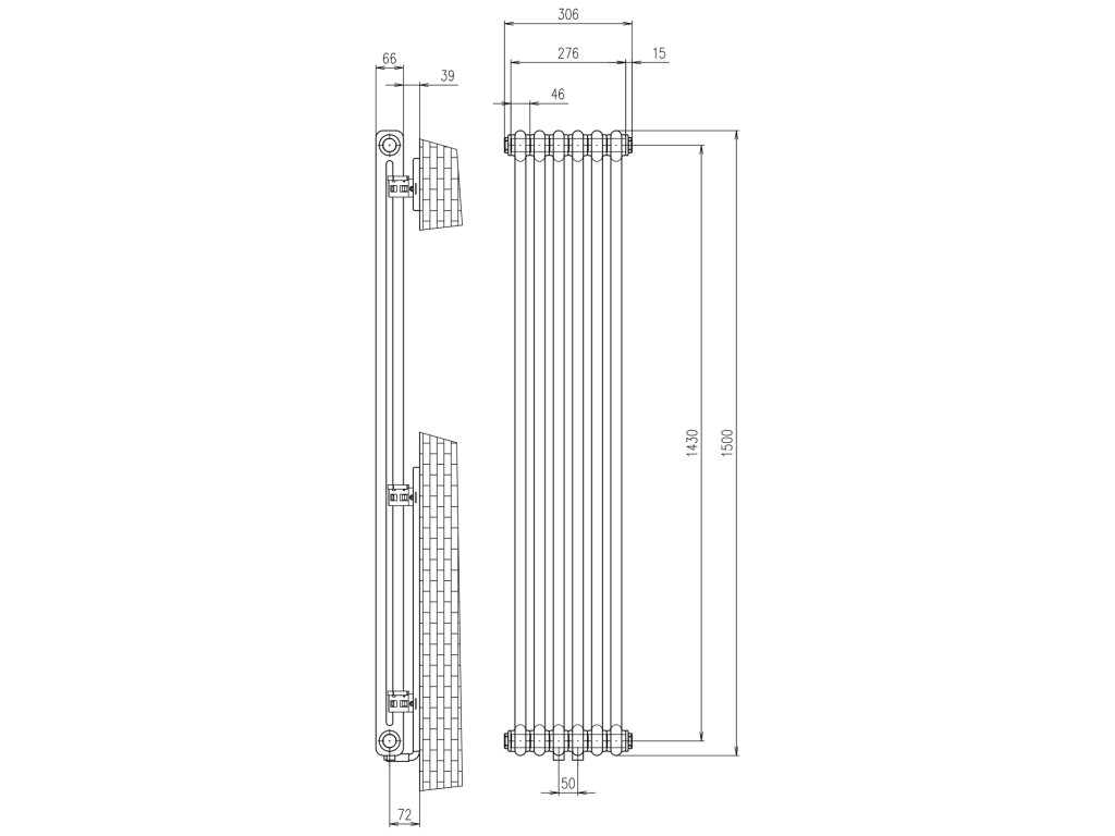 FEDE otopné těleso 1500x306mm, 6 seg., bílá mat