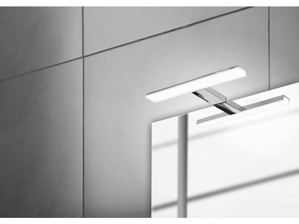 Moderní svítidlo bez LED driveru, připojuje se přímo na 230 V pomocí spojovacího boxu s ochranou IP44. Standardně se dodává s držákem za rám zrcadla nebo na zeď. Součástí balení je i univerzální držák, pomocí kterého lze instalovat svítidlo na galerku nebo přímo na zrcadlo (max. tloušťka zrcadla je 6 mm).