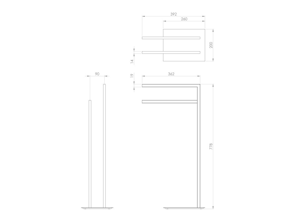 FELIX stojan na ručníky; hranatý; černá mat