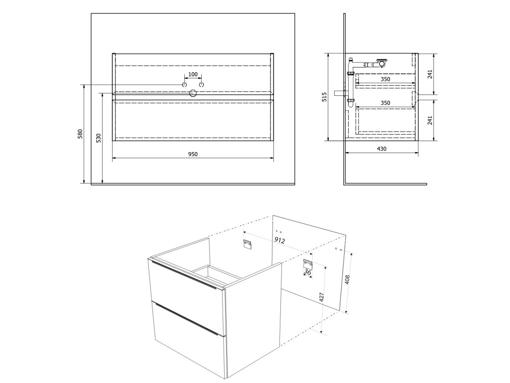Pro umyvadlové skříňky lze vybírat mezi třemi druhy umyvadel: keramickým umyvadlem KARE, umyvadlem z litého mramoru GODIVA a betonovým umyvadlem QUADRADO. Mimoto lze umyvadlové skříňky doplnit deskou z umělého kamene (rockstone) a doplnit umyvadlem na desku.