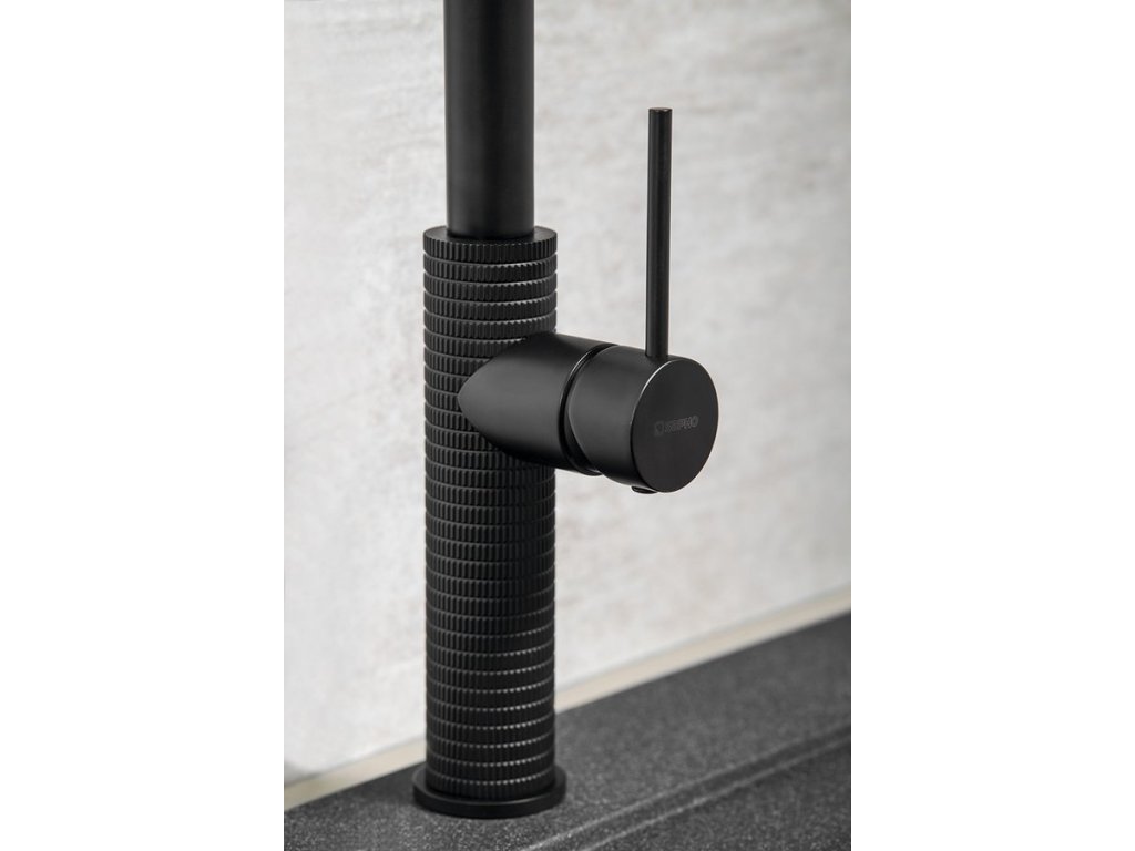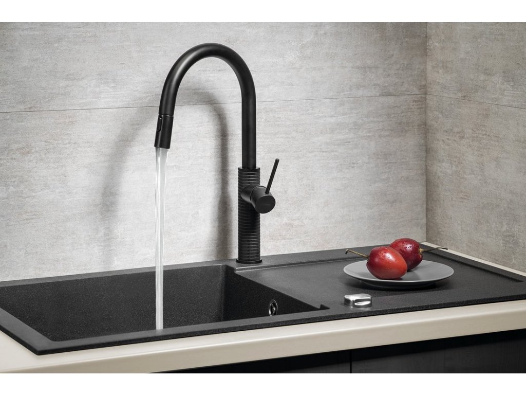 FLAWO stojánková dřezová baterie s výsuvnou sprškou, černá mat