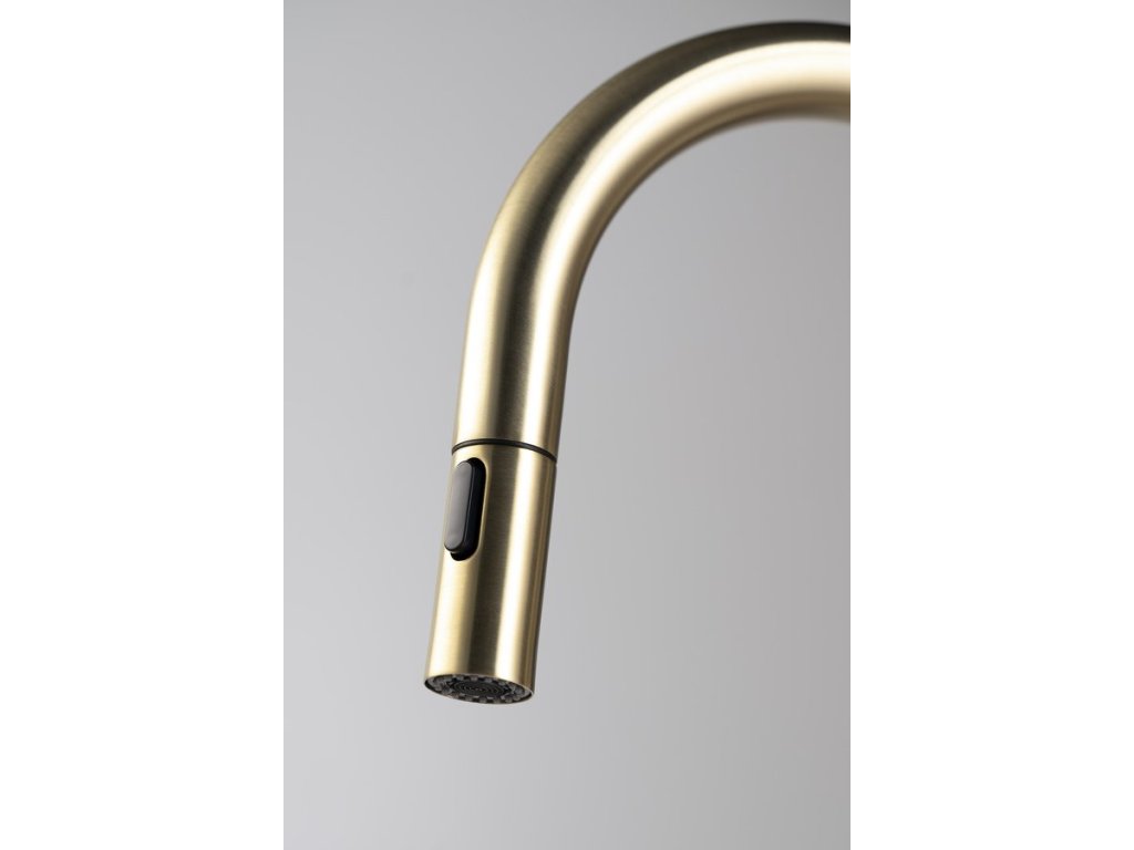 FLAWO stojánková dřezová baterie s výsuvnou sprškou, zlato mat