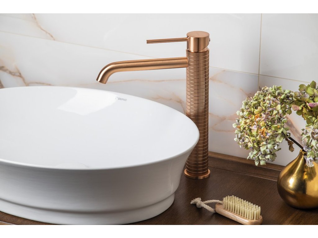 FLAWO stojánková umyvadlová baterie vysoká, měď mat