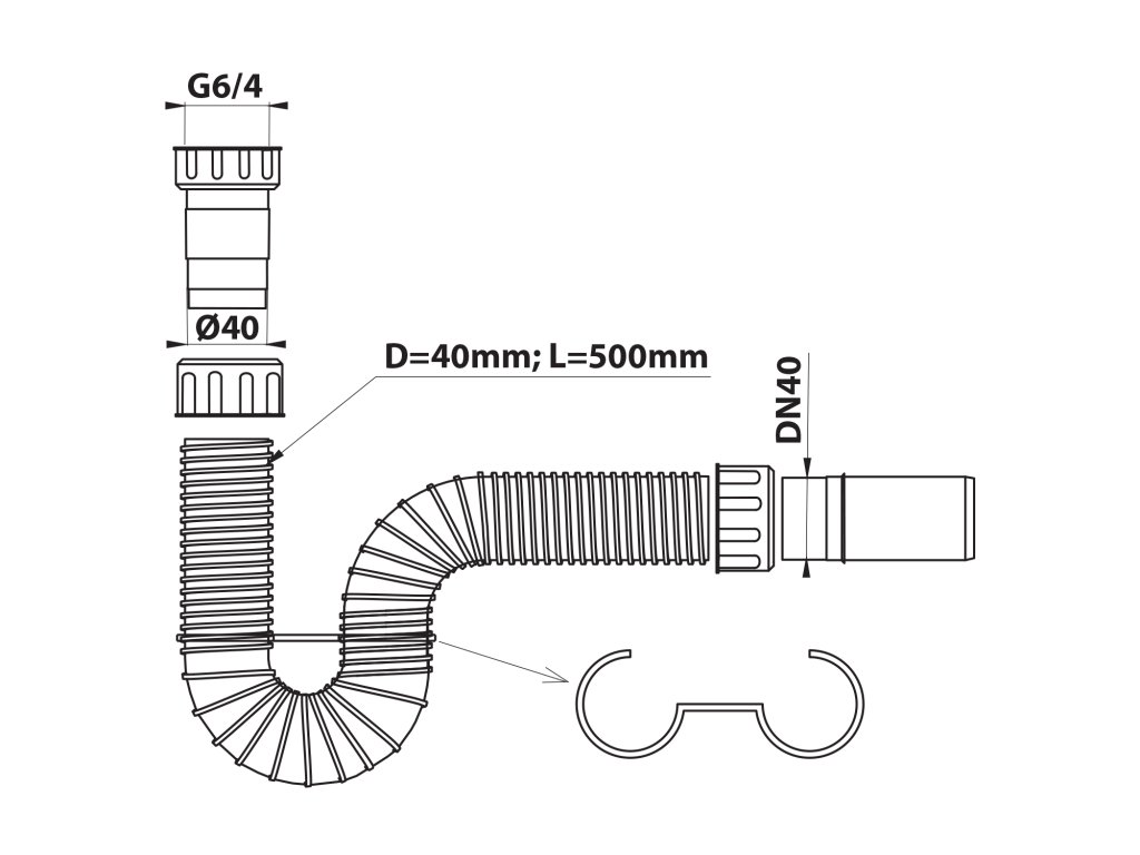 FLEXY dřezový sifon flexibilní 6/4", DN40, bílá