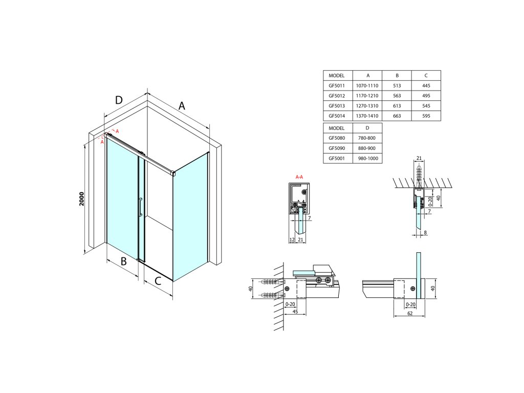 - Stěnové profily umožňují snadnou instalaci skla bez nutnosti vrtání.