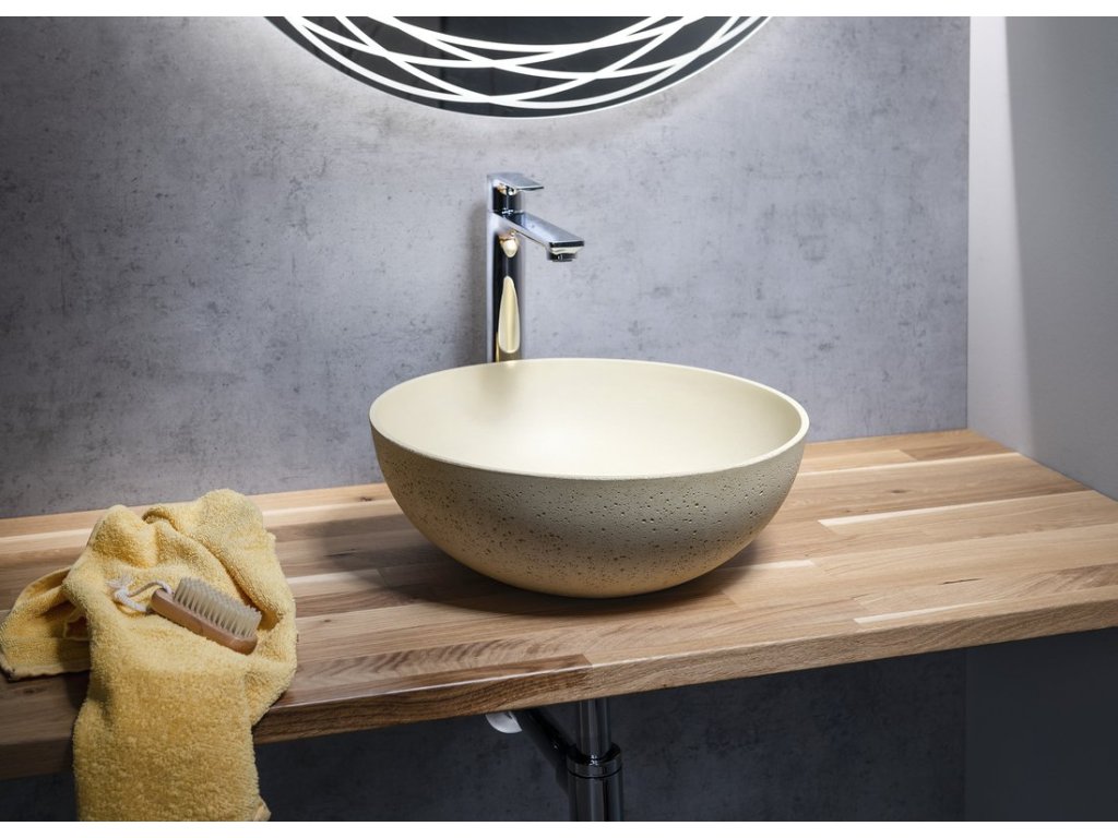 FORMIGO betonové umyvadlo na desku; Ø 39cm; žlutá mat
