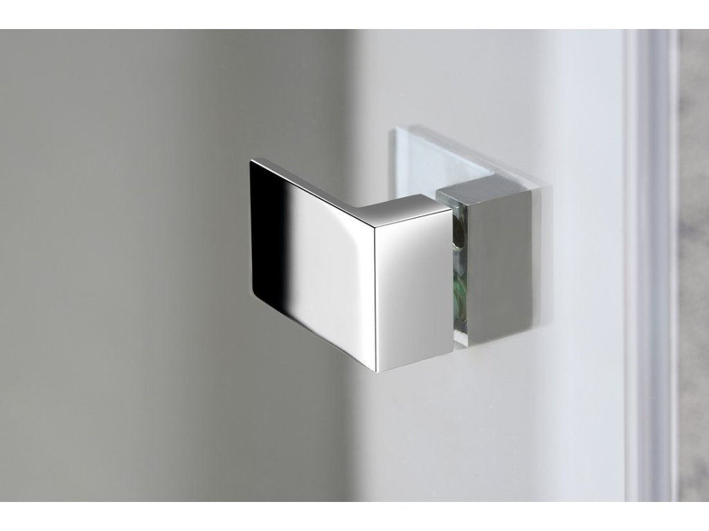 Bezrámové pantové zástěny FORTIS v moderním hranatém designu. Minimalistické pochromované panty v nekompromisním hranatém designu, zevnitř zapuštěné pro snadné čištění a se zvedací funkcí pro pohodlné otevírání. Bezpečnostní čiré sklo v tloušťce 8 mm je ošetřené povrchovou úpravou ANTIDROP pro snadné čištění. Výška 2000 mm. Hranaté pochromované madlo ve stejném minimalistickém designu jako panty.