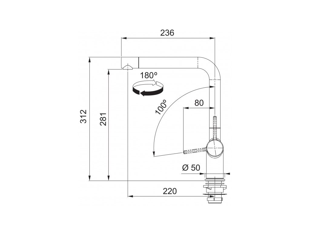 Tlaková dřezová baterie, provedení Onyx, výška 312 mm, pro otvor 35 mm, bez sprchy.
