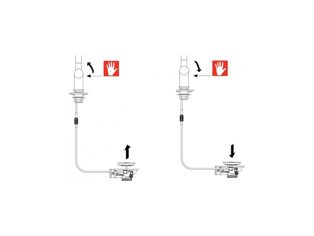 Twist – Inovativní integrované ovládání výpustiBaterie obsahuje speciální otočné ovládání Twist, kterým se ovládá otevření a uzavření odpadu, takže voda snadno, bezpečně a hygienicky odtéká, aniž byste museli vložit ruce do dřezu.