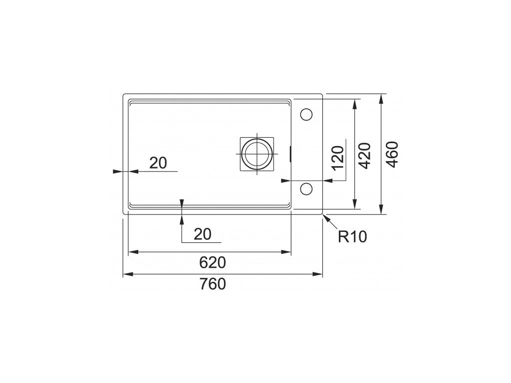 Hranatý granitový jednodřez, provedení Bílá led, otočný, rozměr 760×460 mm, vana 620×420×200 mm, spodní montáž, minimálně 80 cm skříňka, s excentrem.