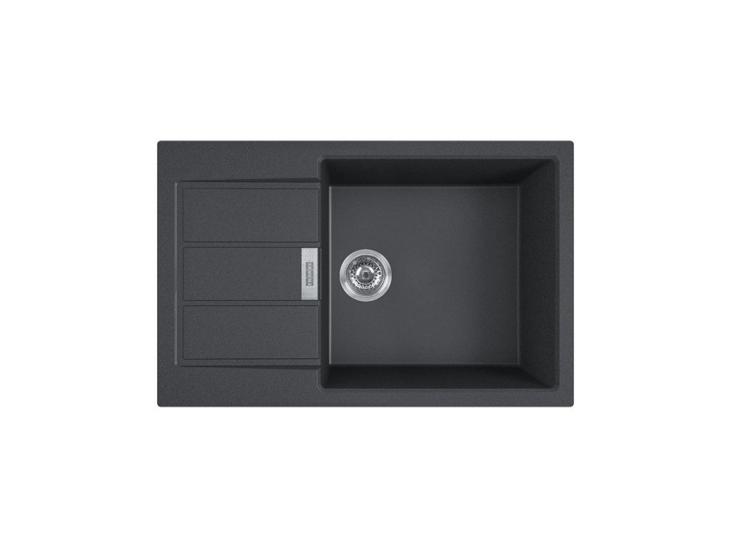 Tectonite dřez s odkapem, provedení Černá, otočný, rozměr 780×500 mm, vana 440×432×200 mm, horní montáž, minimálně 60 cm skříňka.
