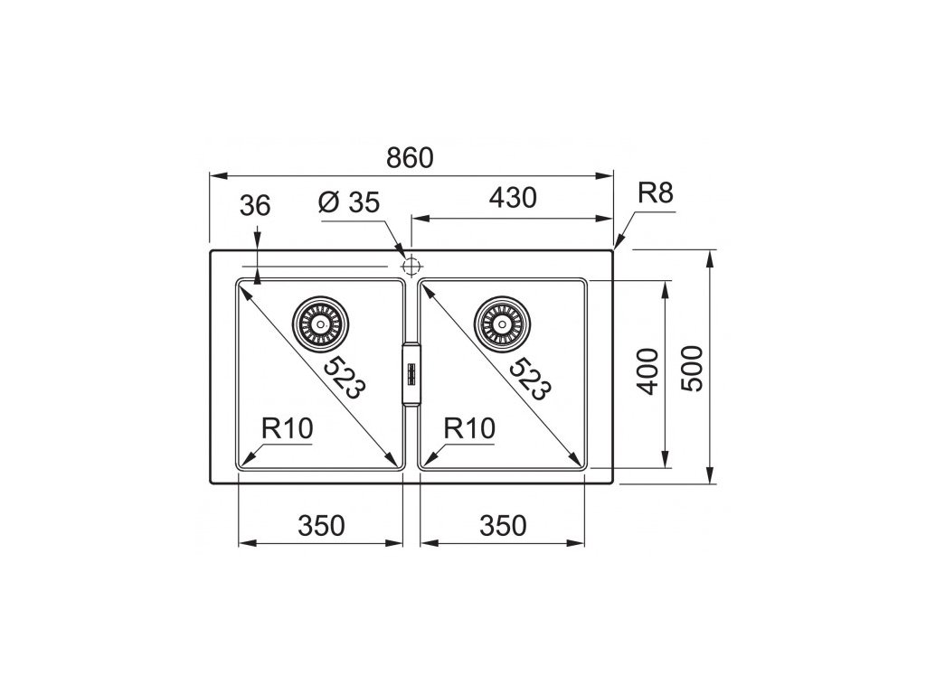 - Rozměr dřezu: 860×500 mm