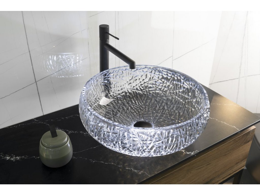 GAVIOTA skleněné gravírované umyvadlo na desku Ø 42cm, černá