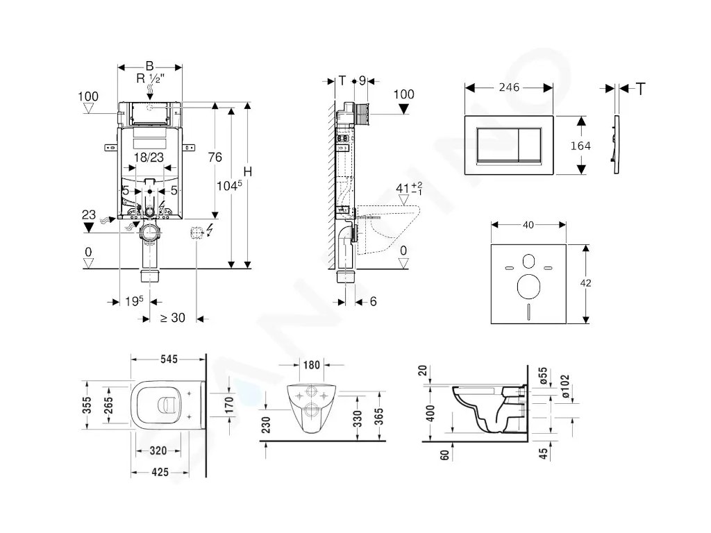 - vybaven trubkovou chráničkou pro přívodní potrubí k připojení sprchovacích WC Geberit AquaClean