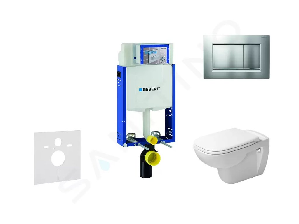 Geberit 110.302.00.5 NH7 - Modul pro závěsné WC s tlačítkem Sigma30, matný chrom/chrom + Duravit D-Code - WC a sedátko, Rimless, SoftClose