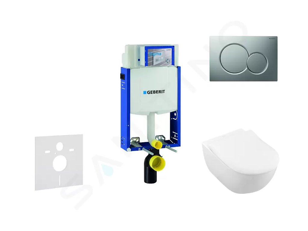 Geberit 110.302.00.5 NI3 - Modul pro závěsné WC s tlačítkem Sigma01, matný chrom + Villeroy Boch - WC a sedátko, DirectFlush, SoftClose, CeramicPlus