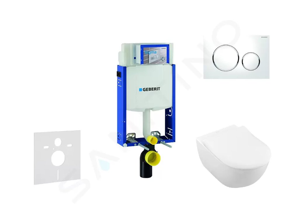 Geberit 110.302.00.5 NI4 - Modul pro závěsné WC s tlačítkem Sigma20, bílá/lesklý chrom + Villeroy Boch - WC a sedátko, DirectFlush, SoftClose, CeramicPlus