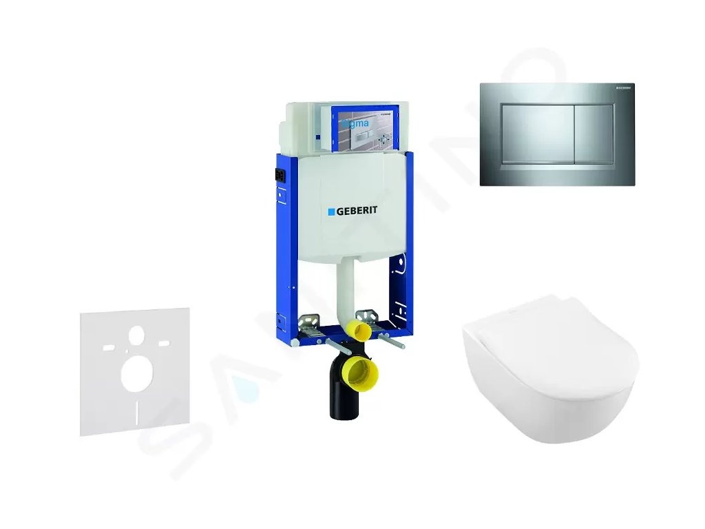 Geberit 110.302.00.5 NI6 - Modul pro závěsné WC s tlačítkem Sigma30, lesklý chrom/chrom mat + Villeroy Boch - WC a sedátko, DirectFlush, SoftClose, CeramicPlus