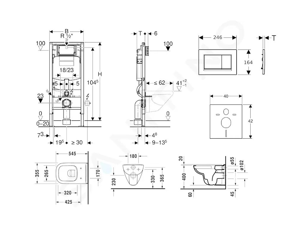 Sada předstěnové instalace, klozetu, WC sedátka a ovládacího tlačítka