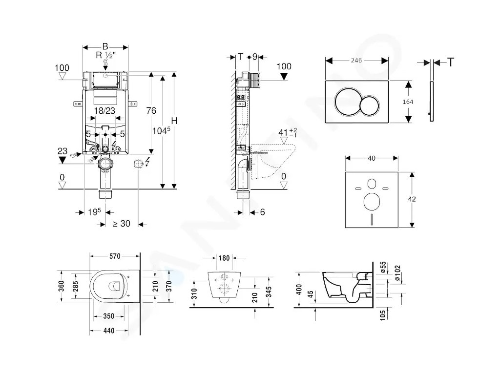 - vybaven trubkovou chráničkou pro přívodní potrubí k připojení sprchovacích WC Geberit AquaClean