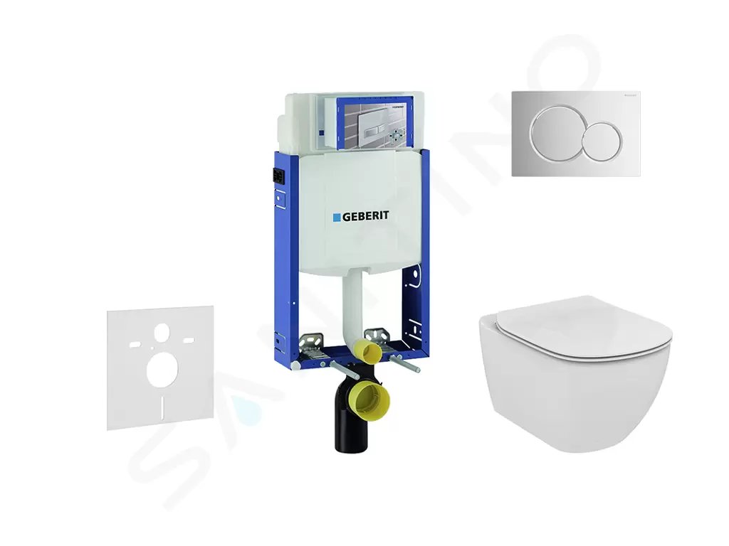 Geberit 110.302.00.5 NU2 - Modul pro závěsné WC s tlačítkem Sigma01, lesklý chrom + Ideal Standard Tesi - WC a sedátko, Aquablade, SoftClose