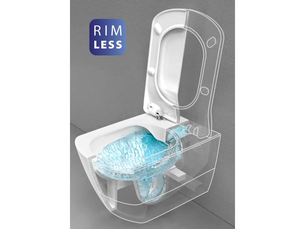 Rimless (NoRim) – toalety bez tradičního oplachového kruhu. Hladký povrch bez dutin a záhybů. Oplachová voda vytéká rozdělovačem vody pouze ze zadní části WC mísy a díky speciálnímu tvaru keramiky dokonale opláchne vnitřní prostor. Výhodou je snadná údržba a čištění WC mísy.
