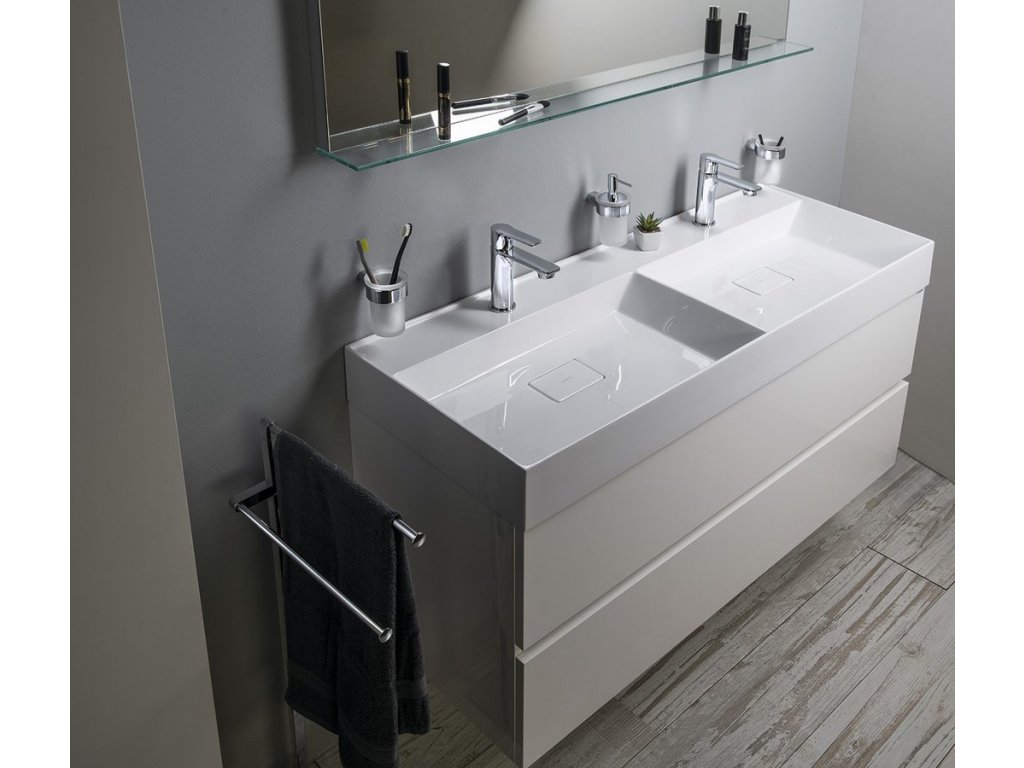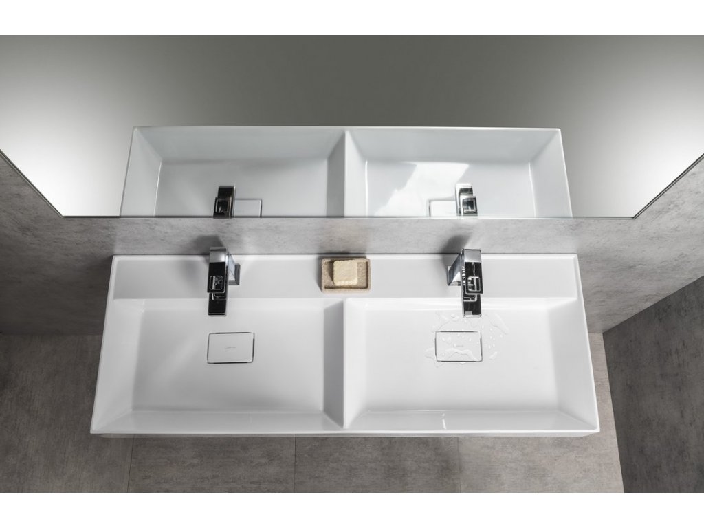GODIVA dvojumyvadlo, litý mramor, 119x44cm, bílá