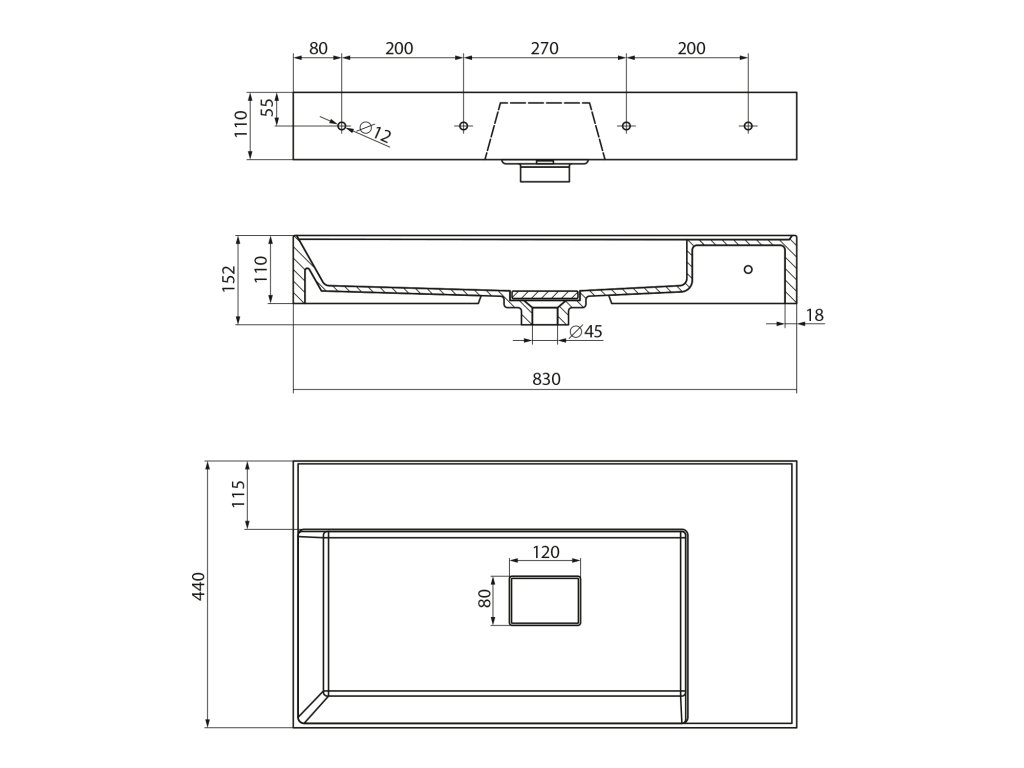 GODIVA umyvadlo, litý mramor, 83x44cm, bez otvoru, bílá