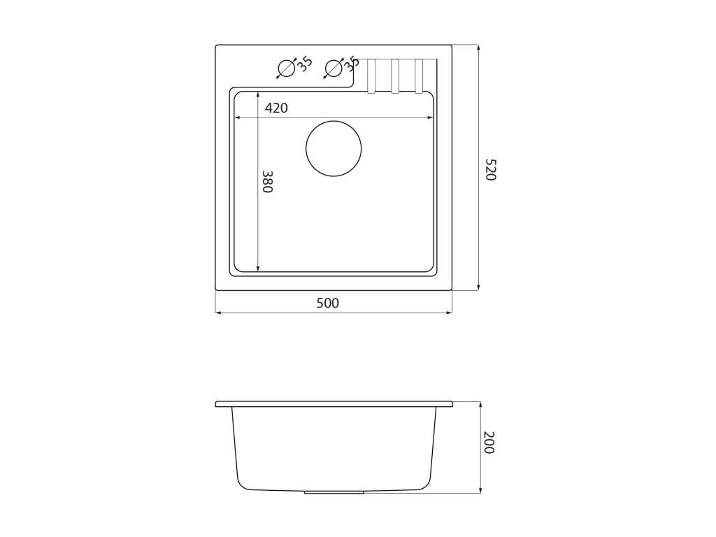 Granitový vestavný dřez mono, 50x52cm, černá