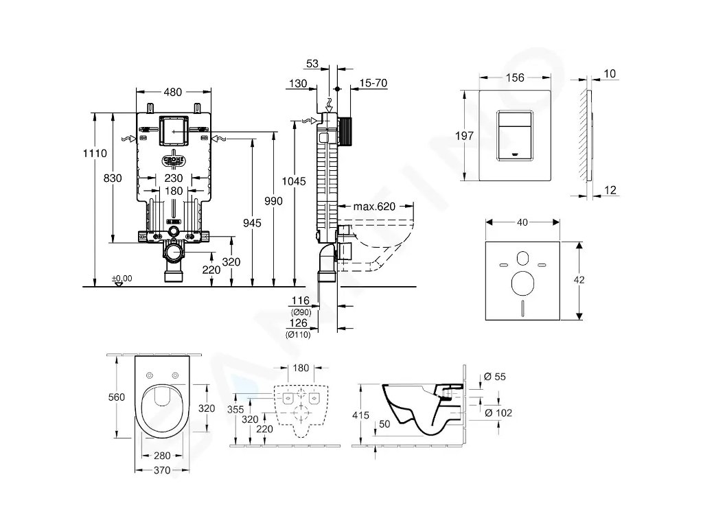 - předstěnový instalační modul Grohe Uniset (38643001), splachovací nádrž GD2